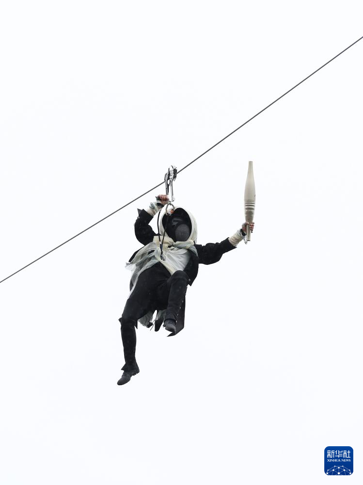 7月26日,開幕式上升起法國國旗。新華社發(fā)(POOL照片/洛伊克·韋南斯)