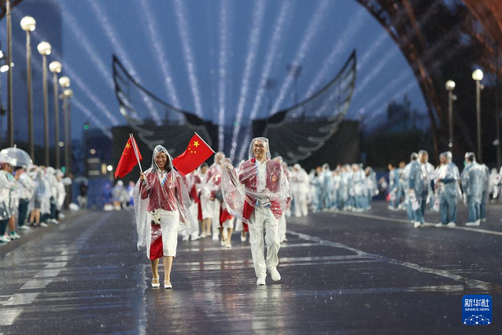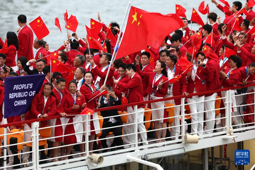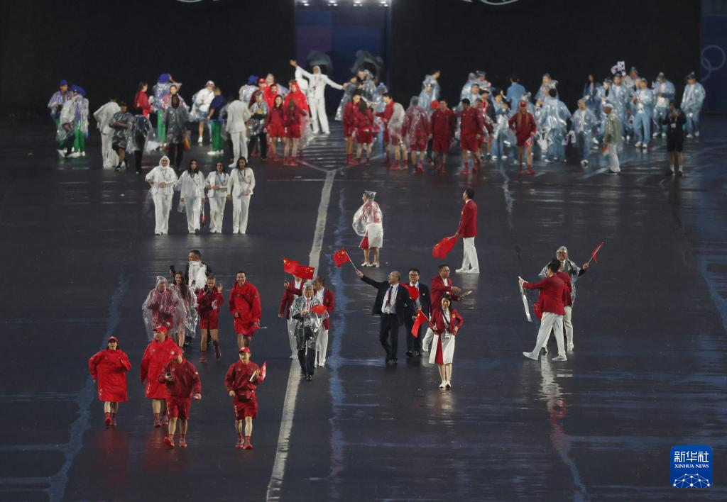 7月26日,中國體育代表團在開幕式上。新華社記者 萬象 攝