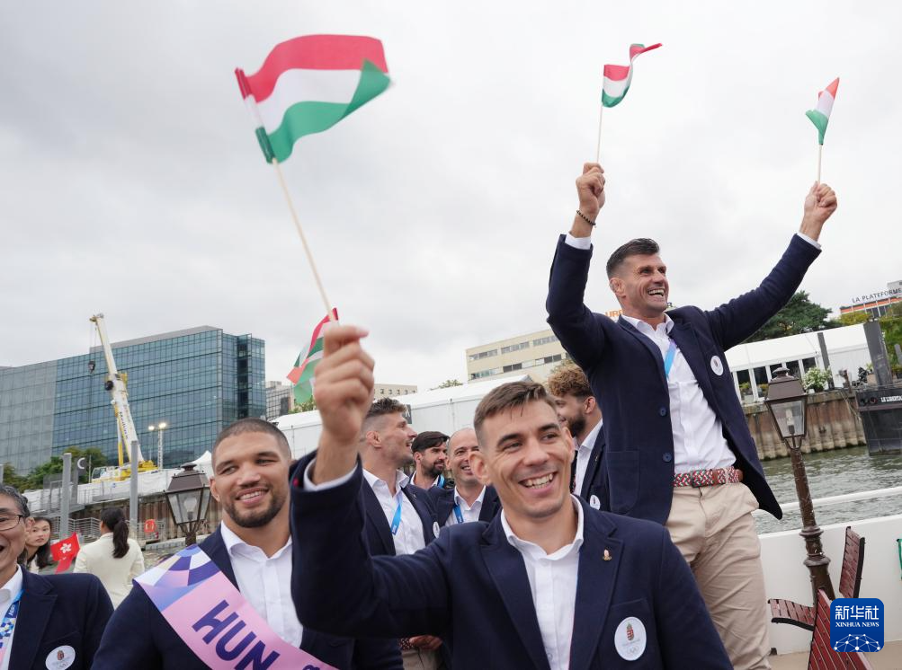 7月26日,各代表團成員在開幕式上抵達耶拿橋。新華社發(fā)(POOL照片/盧多維克·馬林)
