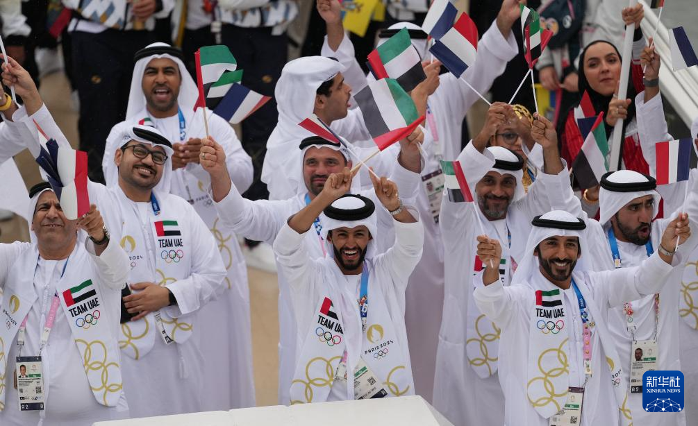 7月26日,安提瓜和巴布達、沙特阿拉伯、阿根廷、亞美尼亞、阿魯巴體育代表團在開幕式上。新華社記者 張玉薇 攝