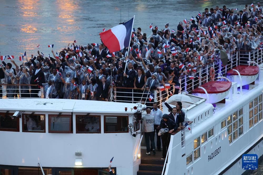 7月26日,法國體育代表團在開幕式上。新華社記者 李鋼 攝pagebreak