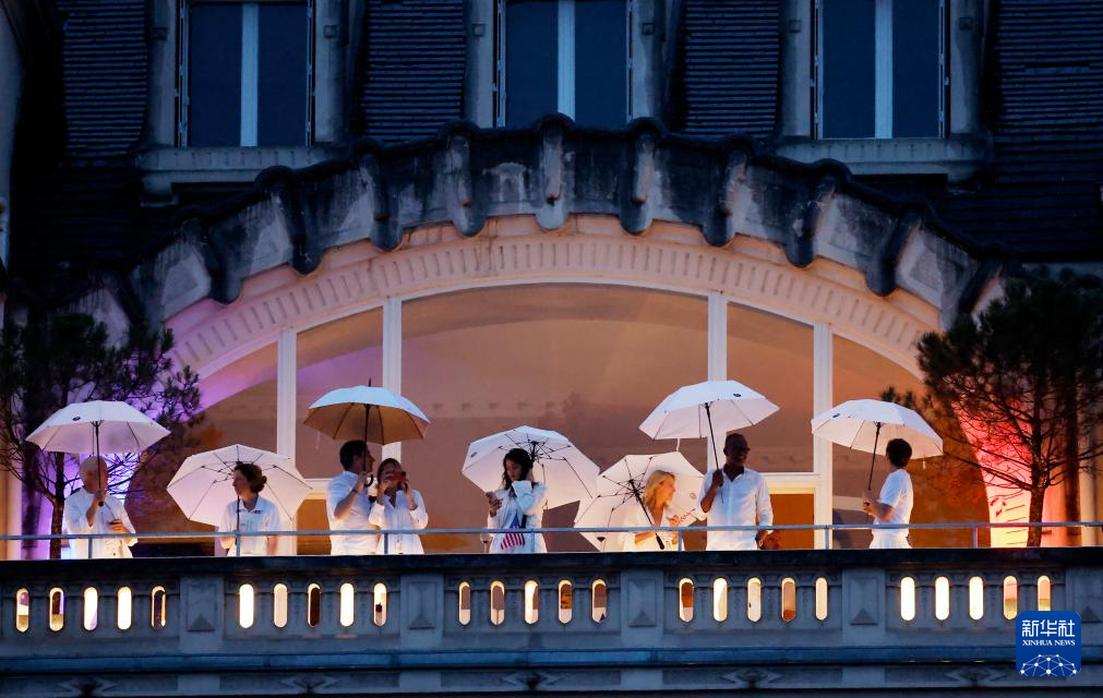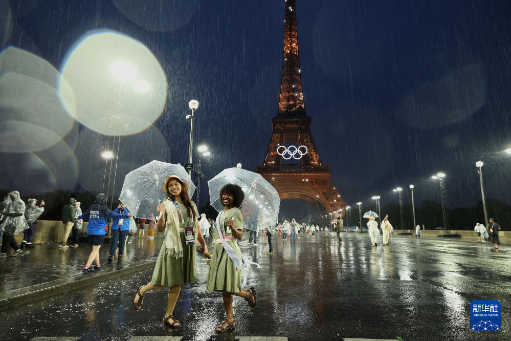 7月26日,觀眾在雨中觀看開幕式。新華社發(fā)(POOL照片/克洛達赫·基爾科因)
