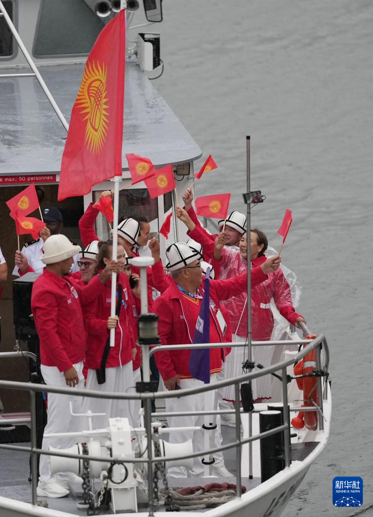 7月26日,吉爾吉斯斯坦體育代表團在開幕式上。新華社記者 萬象 攝