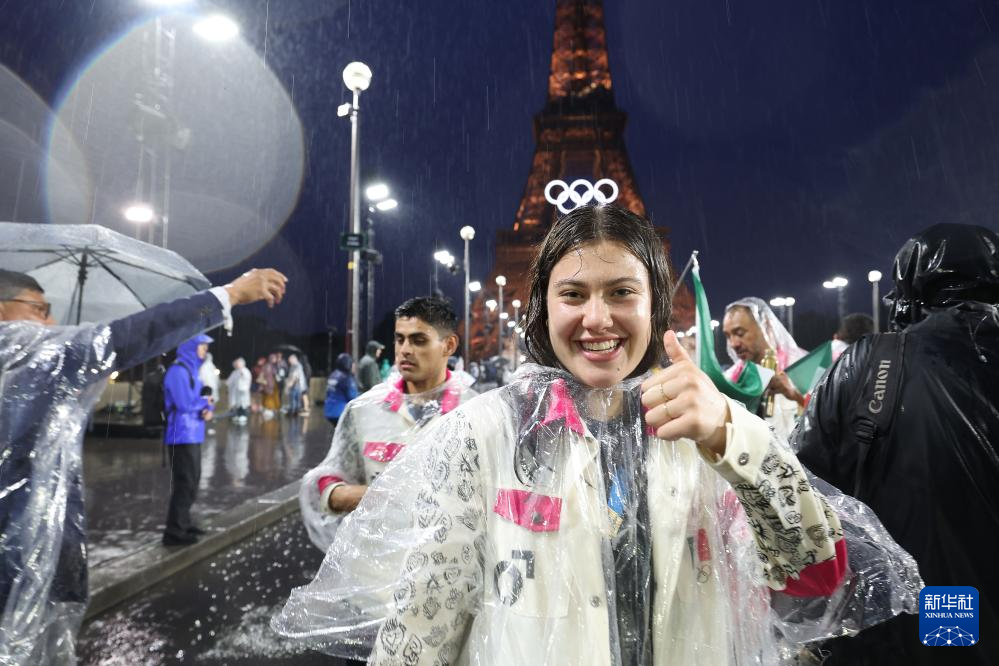 7月26日,墨西哥體育代表團成員在埃菲爾鐵塔前。新華社記者 李明 攝