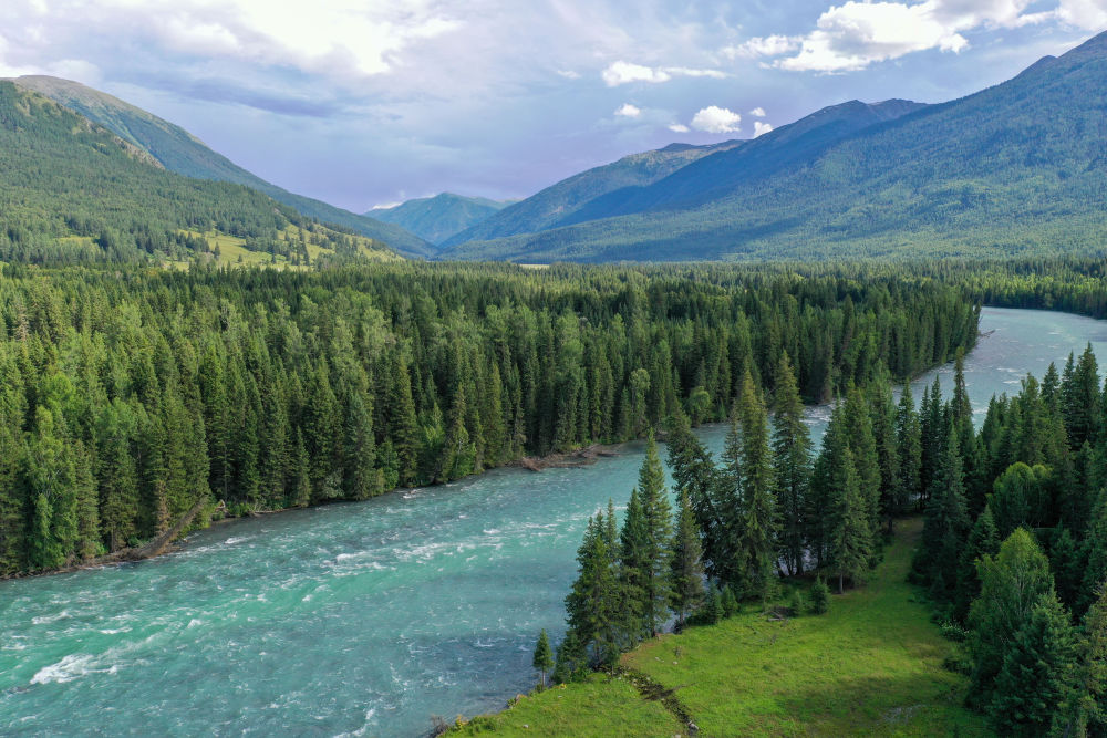 7月22日拍攝的新疆阿勒泰地區喀納斯景區(無人機照片)。