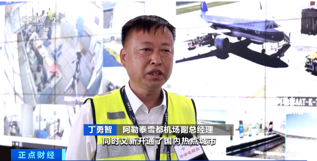 阿勒泰雪都機場副總經理 丁勇智:原有的航線大部分進行了加密,同時又新開通了國內熱點城市直飛阿勒泰的航線,選擇性靈活度更高了,促使今年來的游客更多了,與去年相比增長了35%左右。