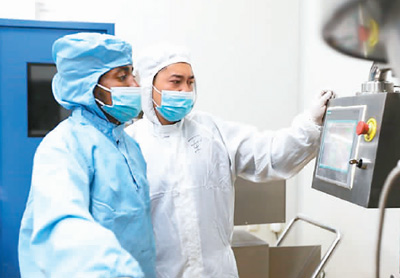 阿莫斯(左)與中國(guó)師傅對(duì)設(shè)備進(jìn)行檢修。