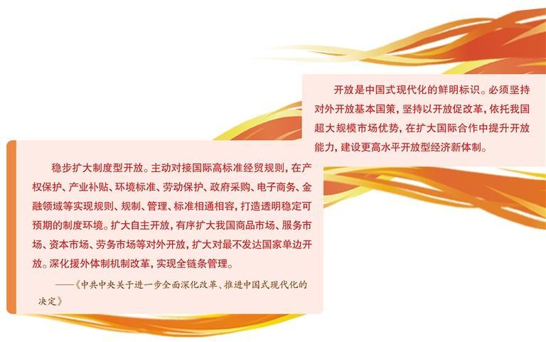 《決定》提出“穩步擴大制度型開放”,要求主動對接國際高標準經貿規則?!稕Q定》作出的一系列重要部署影響廣泛、意義深遠。