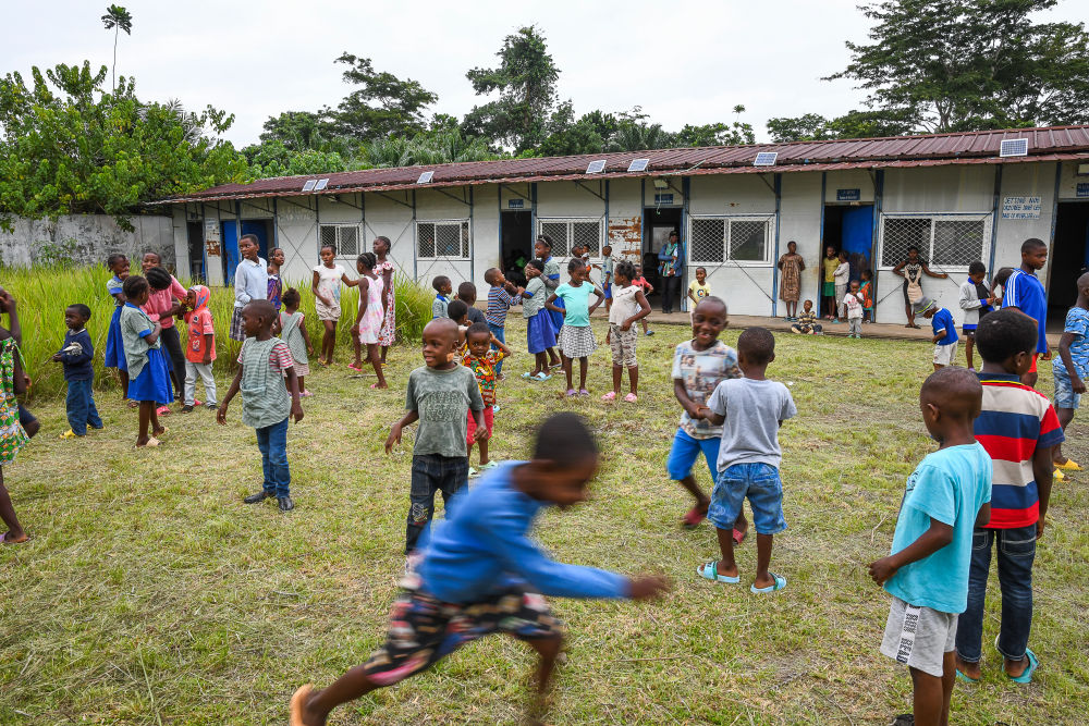 這是古老的恩杜馬萊村幾百年來的第一所小學。隨著中非合作項目推進,這里的交通變得便利,村里小學和部分村民家里還裝上了太陽能照明設備。中非合作“點亮”了這座深藏雨林的村莊,令其舊貌換新顏。