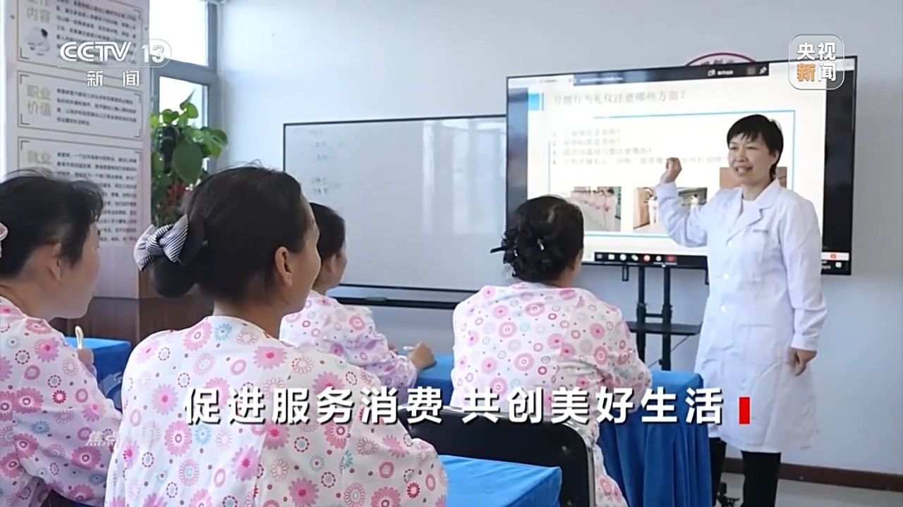 在北京市西城區,來自河北廊坊的月嫂董海菊,正在給寶寶唱兒歌、讀繪本。對于不同年齡段的嬰幼兒護理,董海菊都有著專業且系統化的了解。