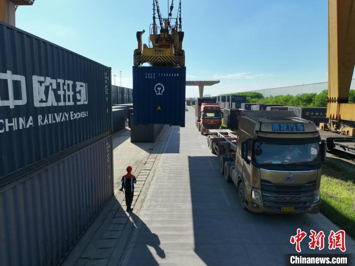 8月26日,廣西南寧國際鐵路港內,鐵路職工頂著下午的烈日,正在為發往越南的貨運班列裝卸貨物。該鐵路港是廣西始發中越班列的核心場站。國鐵南寧局提供的信息顯示,今年前7個月,廣西始發中越班列累計發運貨物6850標箱,同比增長16倍;其中7月份發運1922標箱,超過今年一季度發運量總和,為今年以來第三次刷新單月發運量紀錄。圖為集裝箱擺滿場站,等待裝車。王以照 攝