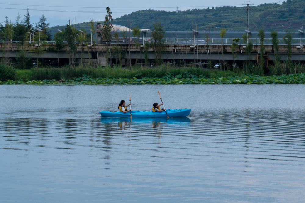 ↑8月25日,游客在滇池南岸的小漁村游玩。