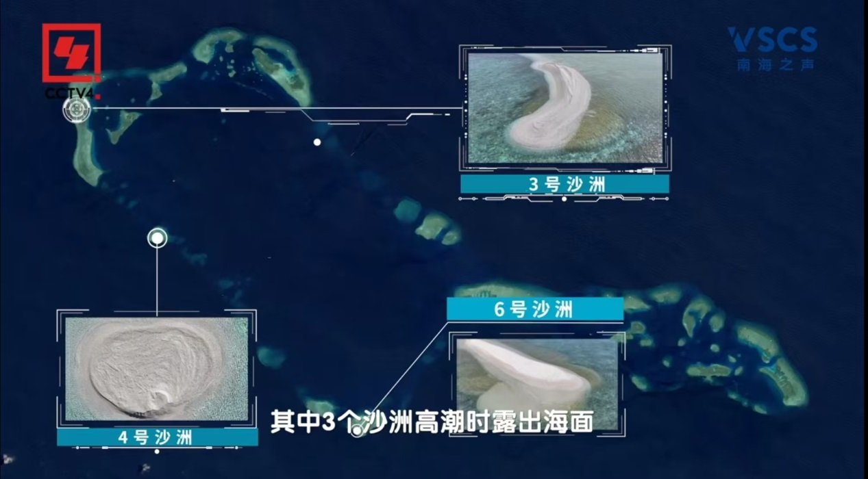 2024年5月至7月,由中國科學家組成的專業海洋生態調查隊,對中國南沙群島仙賓礁展開調查。調查發現,仙賓礁珊瑚礁生態系統處于總體健康、局部受損的狀態,現有的6個沙洲均為自然形成,其中3個在高潮時露出海面。《報告》還顯示,仙賓礁及附近海域存在的頻繁人類活動對該區域珊瑚礁生態系統健康有較大脅迫性影響。