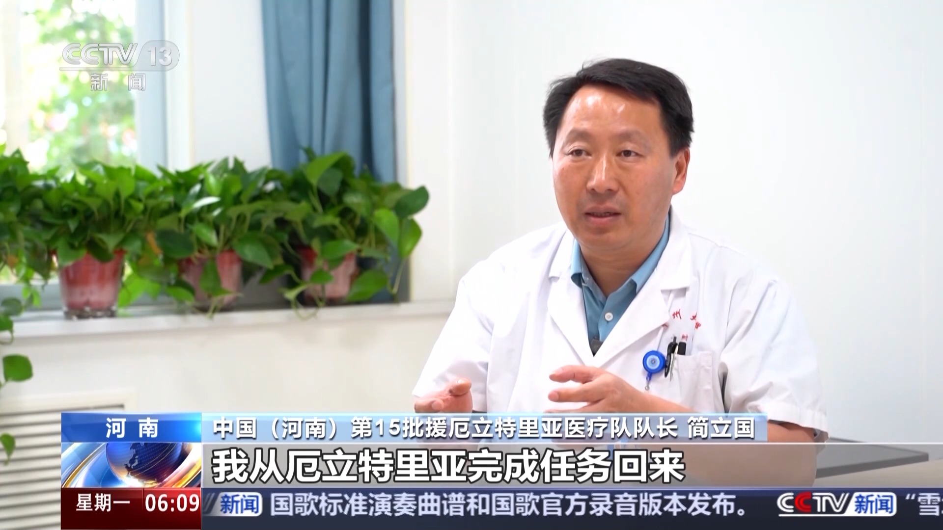 中國(河南)第15批援厄立特里亞醫療隊隊長 簡立國:通過援非,國家也給了我莫大的榮譽,我深深感覺到這是一種責任感和使命感。如果祖國有需要,厄立特里亞人民有需要,我愿意再次帶隊出征。