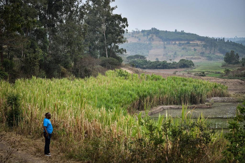這是8月15日在盧旺達南方省胡耶區拍攝的菌草田。