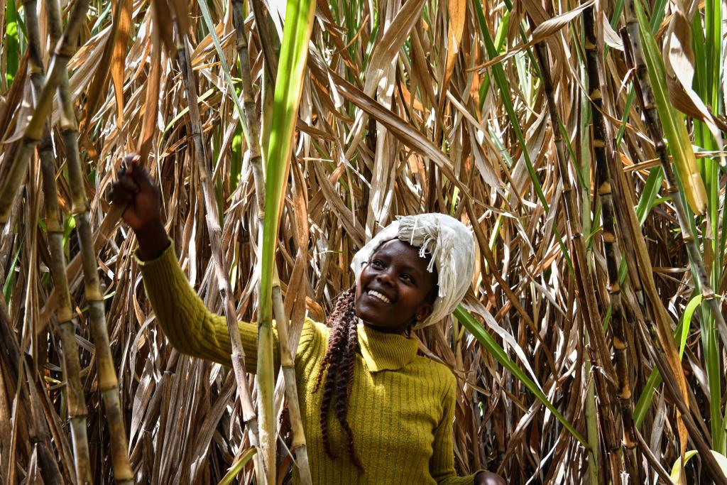 1月26日,當地農民在肯尼亞納庫魯倫吉內特村的菌草農場除雜草。
