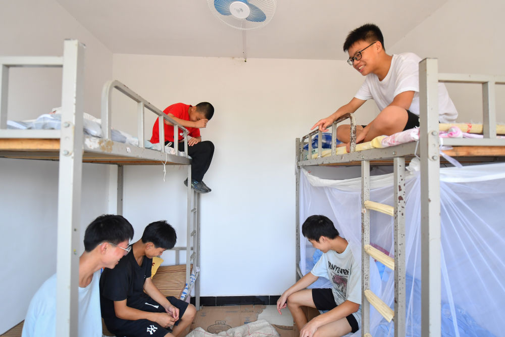 9月1日,在湖南華容縣團洲學校,學生在宿舍聊天。新華社記者 陳澤國 攝