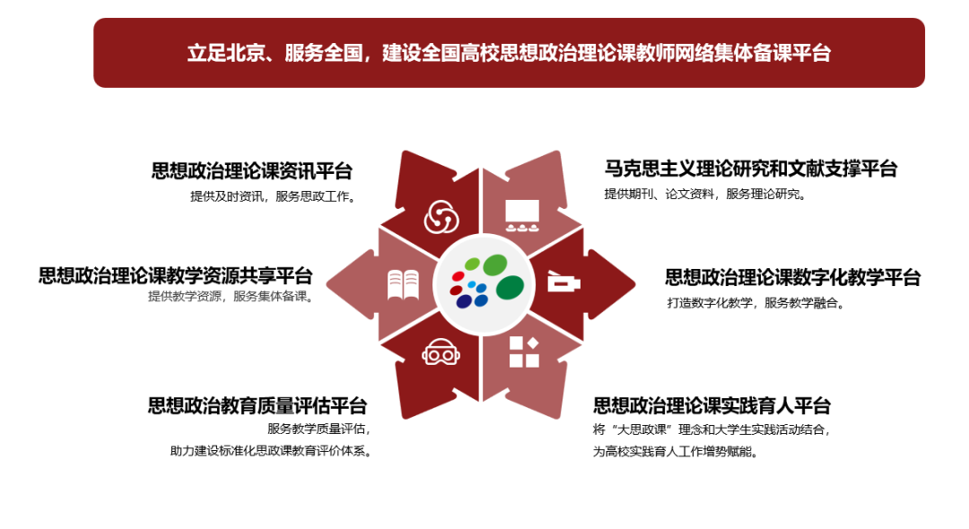 2019年的學校思想政治理論課教師座談會上,習近平總書記在談到各地各高校尤其是北京市的有益探索時,專門提到了“北京高校思想政治理論課高精尖創新中心”。自2015年中心成立,中國人民大學全面建設面向大中小學思政課教師的一體化網絡資源平臺,打造服務全國大中小學思政課教師的“中央廚房”。