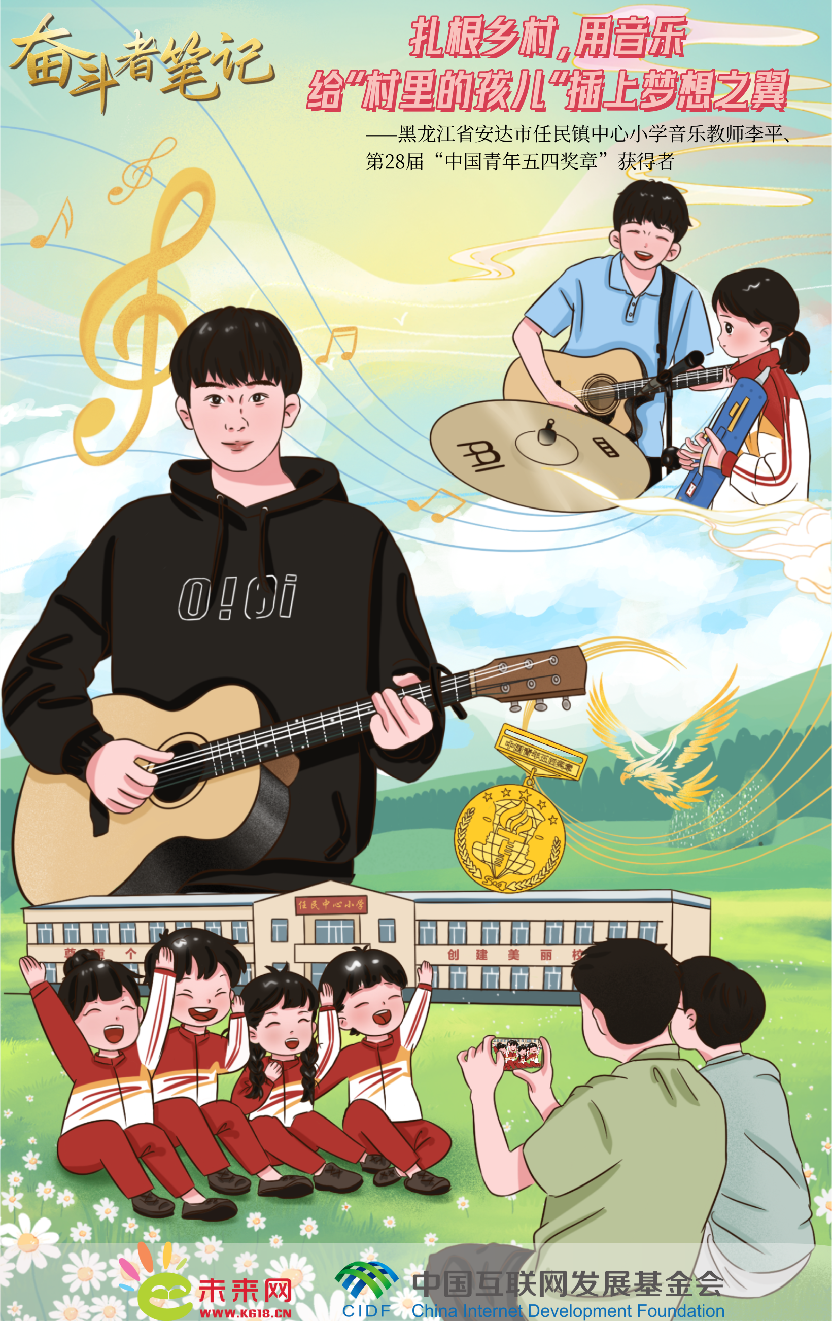 隨著新學期的到來,黑龍江省安達市任民鎮中心小學又傳來了孩子們悠揚的歌聲,“90后”音樂教師李平正帶著他的音樂班學生沉浸在音樂的海洋之中。自2016年入職任民鎮中心小學至今,李平從一名音樂教育專業的畢業生逐漸成長為擁有“百萬粉絲”的網絡紅人,從一名普通的鄉村教師成長為了第28屆“中國青年五四獎章”獲得者。李平的進步與收獲有目共睹,“村里的孩兒”音樂班也逐漸成為越來越多人矚目的焦點。