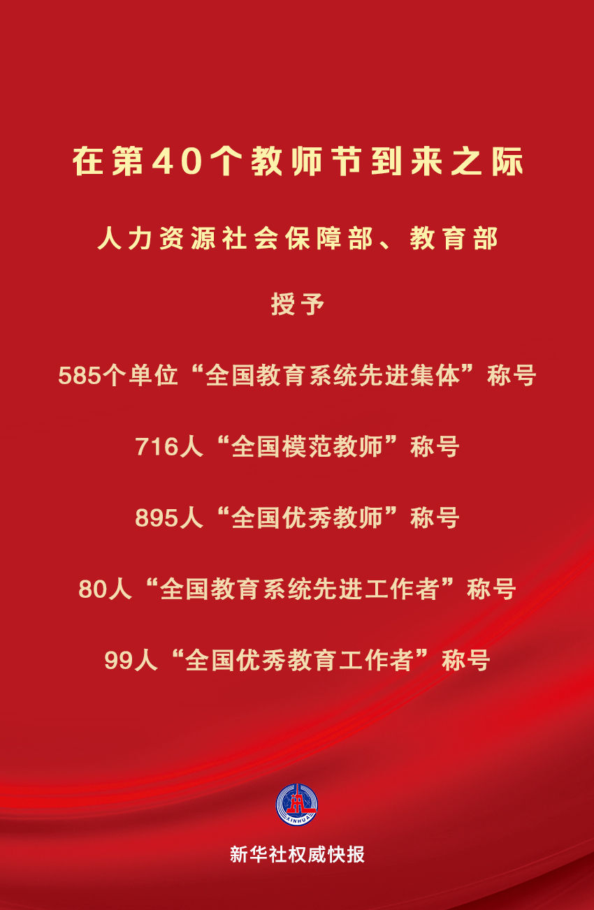 新華社權威快報|慶祝第40個教師節 全國585個單位、1790人受表彰