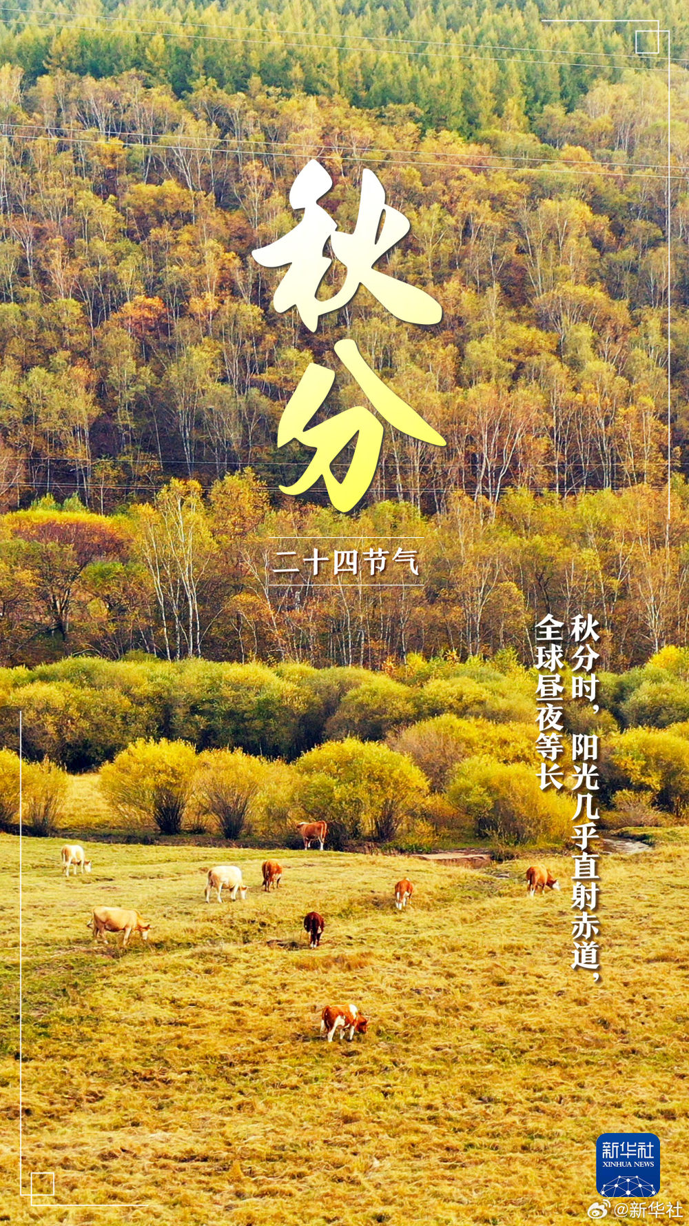 【今日秋分,共慶豐收】①北京時間9月22日20時43分迎秋分;②秋分陽光幾乎直射赤道,晝夜等長;③秋分后晝夜溫差加大,記得及時添衣加被;④秋分也是農民豐收節。讓我們在瓜果飄香、碩果累累的喜悅中,一起迎接收獲的金秋!