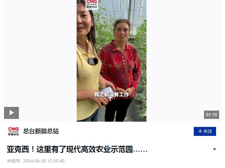 阿依謝姆古麗,在新疆喀什地區疏勒縣的山東省援疆項目“蔬樂”現代高效農業示范園,從事西瓜種植工作已經兩年了。“作為農民的她,之前沒有收入。”談到這份工作,阿依謝姆古麗激動得熱淚盈眶。
