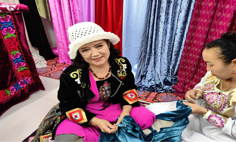 將傳統(tǒng)手工藝轉化為商品,市場化推進,托云牧場不懈探索手工藝與鄉(xiāng)村振興的新路徑,助力當地手工藝人將“指尖技藝”轉化為“指尖經濟”。維吾爾族姑娘努力曼古麗·買加買提分享道:“在刺繡合作社,我與柯爾克孜族的姐妹互相切磋學習,通過刺繡工藝的差異,我們發(fā)現(xiàn)了各民族刺繡的獨特風格,同時發(fā)現(xiàn)很多共通的地方。在彼此互相了解學習的過程中,感受到了各民族文化的相互交融與共同進步。”