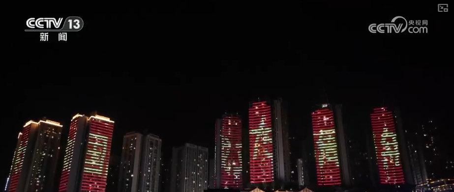 在重慶市奉節縣、永川區等地,紛紛利用城市樓宇開啟國慶燈光秀。變換多彩的燈光和圖案,將建筑物裝點得美輪美奐,營造出祥和喜慶的節日氛圍。