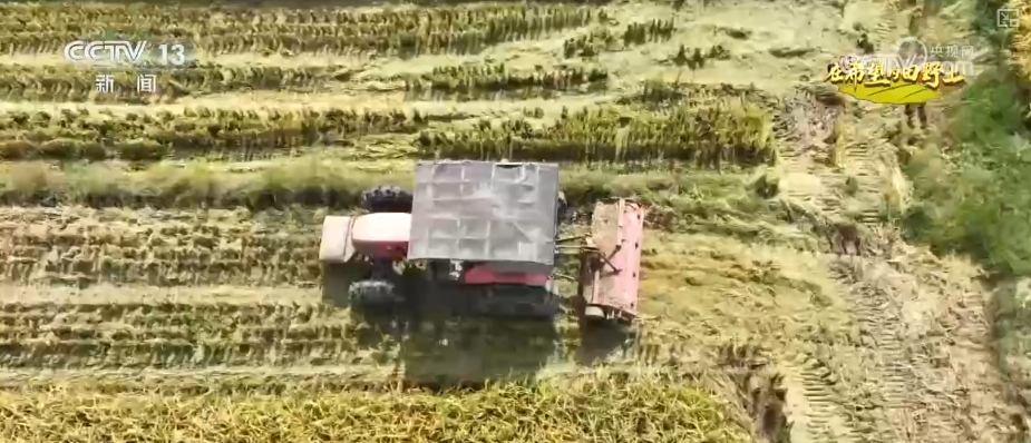 水稻成熟迎收獲 大型機(jī)械助力收割