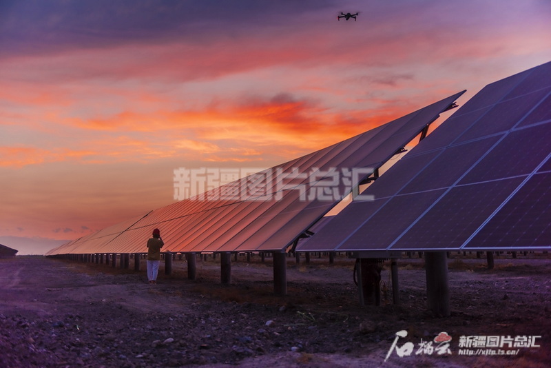 2017年5月9日拍攝的新疆生產建設兵團第十三師紅山農場三塘湖風光電基地外景。王志清攝