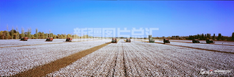 2020年10月,采棉機在新疆生產建設兵團第一師的棉田里采收棉花。新疆圖片總匯資料圖片