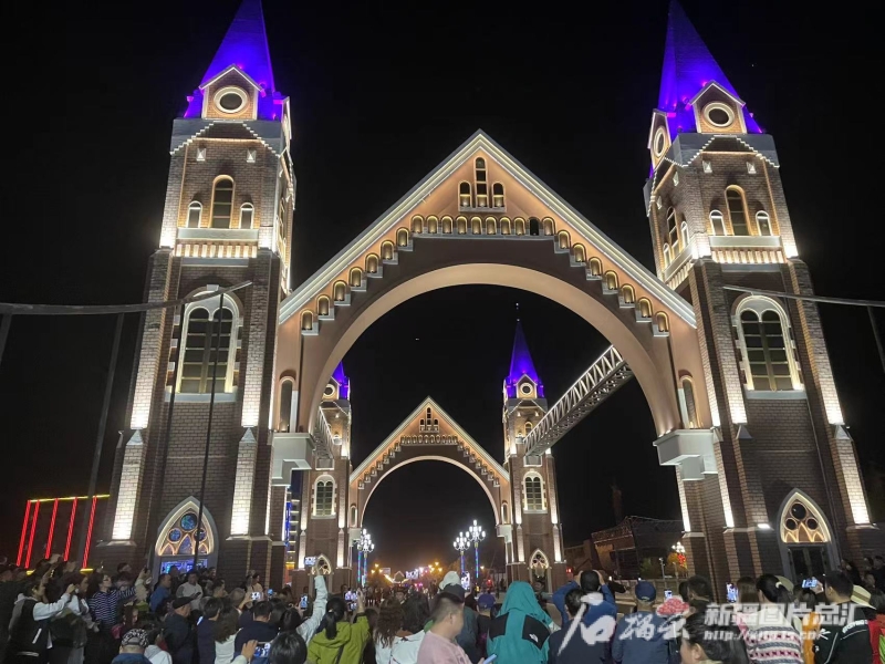 特克斯縣夜間演出吸引眾多游人。石榴云/新疆日?qǐng)?bào)記者姚剛攝