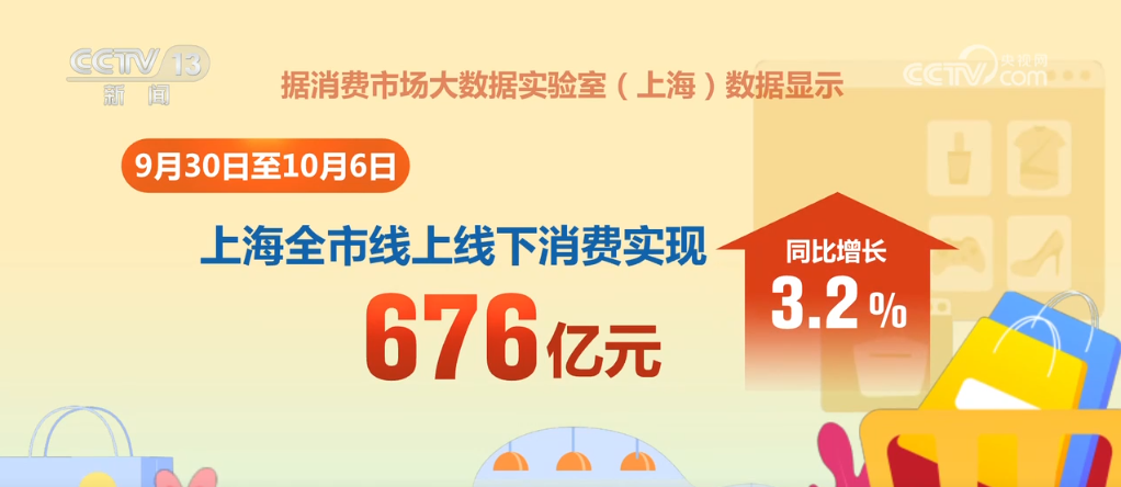 消費市場大數據實驗室(上海)數據顯示,9月30日至10月6日,上海全市線上線下消費實現676億元,同比增長3.2%。36個重點商圈進店線下客流總量達到3449萬人次,同比增長9.8%,25個商圈客流實現增長。消費新場景的開業亮相為節日市場打造新動力,徐匯區的西岸夢中心聯動首屆上海國際光影節徐匯分會場,以多家濱水首店新開、多元商旅文體展融合活動吸引廣大客流;浦東新區的前灘公園巷開街,與周邊的商場和公園共同形成“商場+街區+濱江公園”的商業形態,吸引客流8.7萬人次。