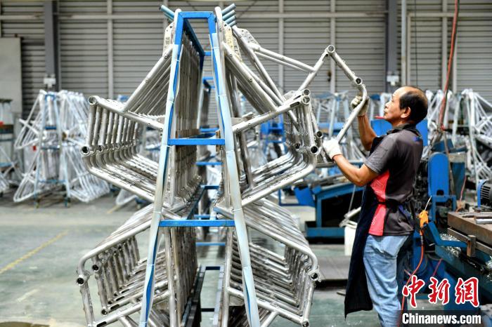舊鎮(zhèn)工業(yè)園聚集著不少?gòu)纳钲诎徇w而來(lái)的臺(tái)企,主要生產(chǎn)自行車(chē)車(chē)架、腳踏板、車(chē)鎖、鈴鐺,鋁管等,形成較為完整的自行車(chē)產(chǎn)業(yè)鏈。中新網(wǎng)記者呂明 攝