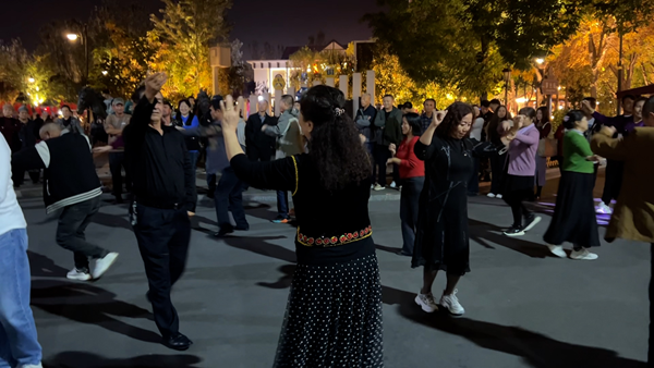 近百年的文化沉淀塑造了六星街獨特的歷史人文價值,記者在現場感受到濃濃“疆式煙火氣”,整個街區隨處可見音樂聲,游客和當地民眾圍圈跳起舞蹈,就連賣商品的小販都在跟著節拍一起搖擺。