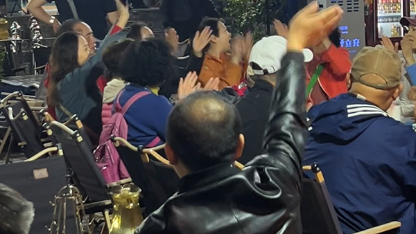 游客齊聲合唱《蘋果香》。中國青年網記者 馬志強攝
