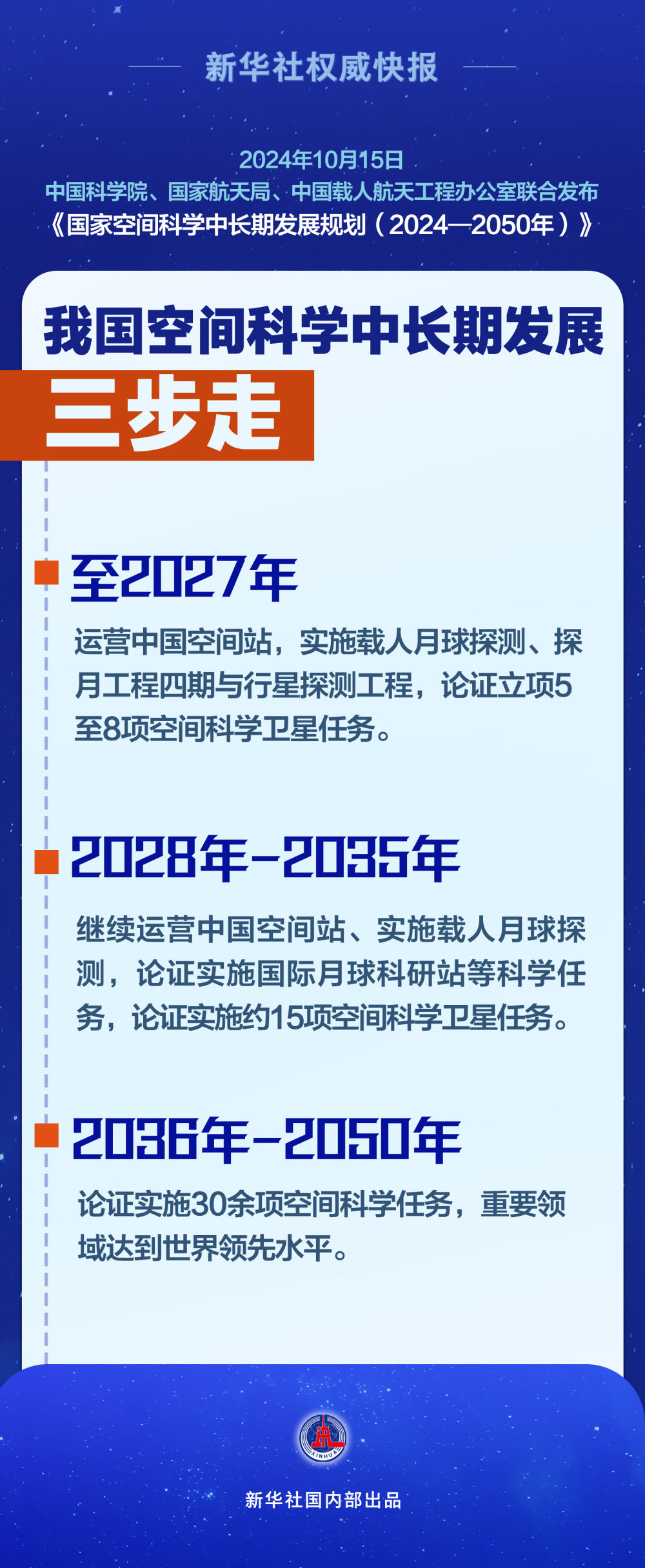 中國科學院、國家航天局、中國載人航天工程辦公室10月15日聯合發布《國家空間科學中長期發展規劃(2024—2050年)》。