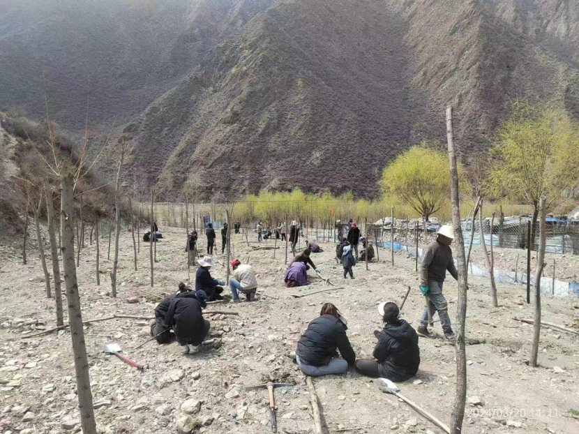 2004年起,山南市加查縣洛林鄉布姆村黨支部組織黨員群眾40余人開始植樹造林,從第一年的200余株到2024年的1萬余株,把50畝的黃沙變成了綠洲,柏樹、柳樹、銀杏樹在洛林鄉迎風飄揚。2023年,50畝的生態林為布姆村集體經濟貢獻1萬余元收入,同時還起到防風固沙和天然氧吧的效果。