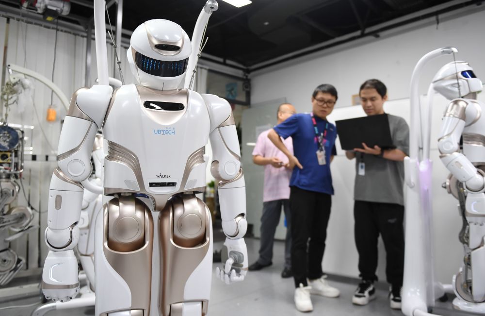 2024年6月26日,在位于深圳市南山區智園的優必選總部,工作人員對人形機器人進行測試。新華社記者毛思倩攝