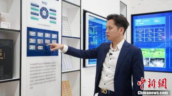 “澳門是粵港澳相互連接的一個中間點,我們在大灣區創業,通過構建數字化信息平臺,融合內地產業發展,發揮澳門品牌優勢,讓內地更多產品出口海外。”澳門青年馮文滔日前接受中新網采訪,談起他在粵港澳大灣區創業經歷時如是說。圖為廣東廣州,馮文滔介紹產品“電子身份證”。
