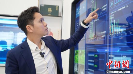 “我父親早在20世紀90年代就到廣東中山創辦工廠,因此每年假期我都會跟著父母到內地,這些年也親眼看到大灣區內地城市的快速發展。”馮文滔表示,通過考察,他認為廣州擁有完善的產業鏈體系和良好營商環境,充滿發展潛力和機遇。在2021年,馮文滔創辦廣州澳新茶業國際貿易有限公司,為茶葉企業提供區塊鏈數字化溯源、茶葉快檢等方面的服務。圖為馮文滔查看茶產業數字信息云平臺。
