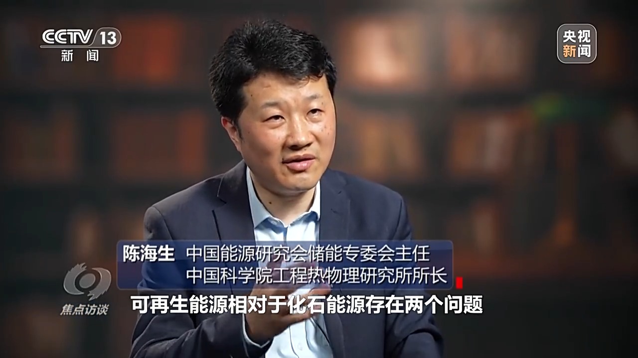 中國能源研究會儲能專委會主任、中科院工程熱物理研究所所長 陳海生:可再生能源相對于化石能源存在兩個問題,一個就是可再生能源的能量密度比較低,比如說風能、太陽能,這就需要轉換成更加強有力的能源形式,比如說我們通過風力發電、光伏發電轉化成電。另外一方面就是可再生能源存在著間歇性、不穩定性,就是我們通常所說的靠天吃飯,這就需要儲能,將可再生能源轉化成連續穩定的能源,就對新型儲能提出了重大的需求。