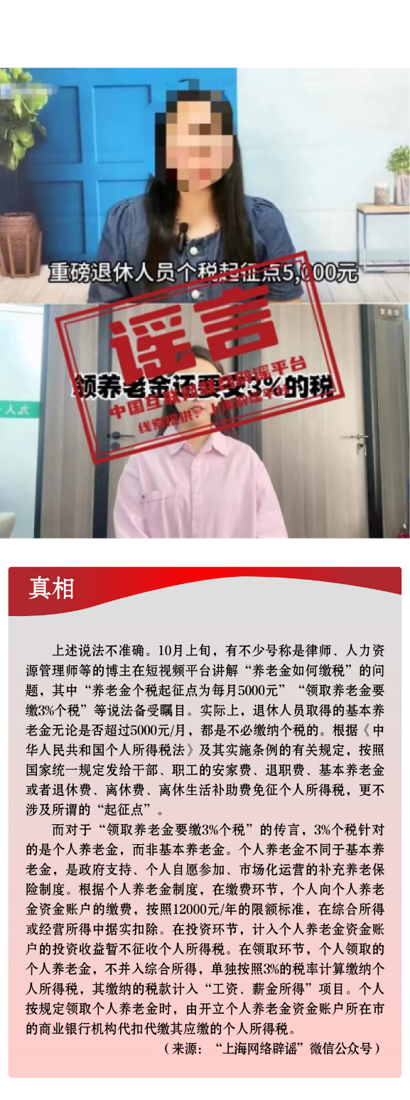 領(lǐng)取養(yǎng)老金要繳3%個稅,起征點5000元/月?