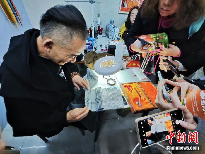 織補店內(nèi),徐春元正在展示修復(fù)成品。劉越 攝