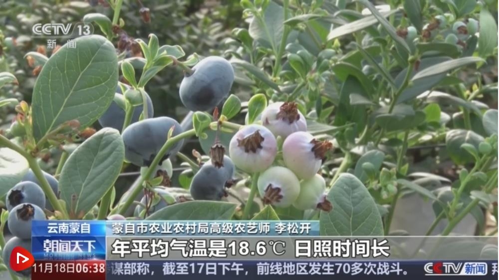 11月份開始,云南紅河州蒙自市的藍莓進入了果實成熟期,陸續上市。