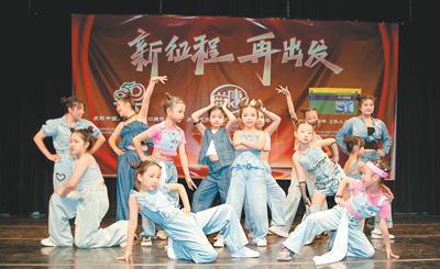 圖為唐韻藝術團成立25周年匯報演出中,少兒爵士舞班在表演節目。受訪者供圖