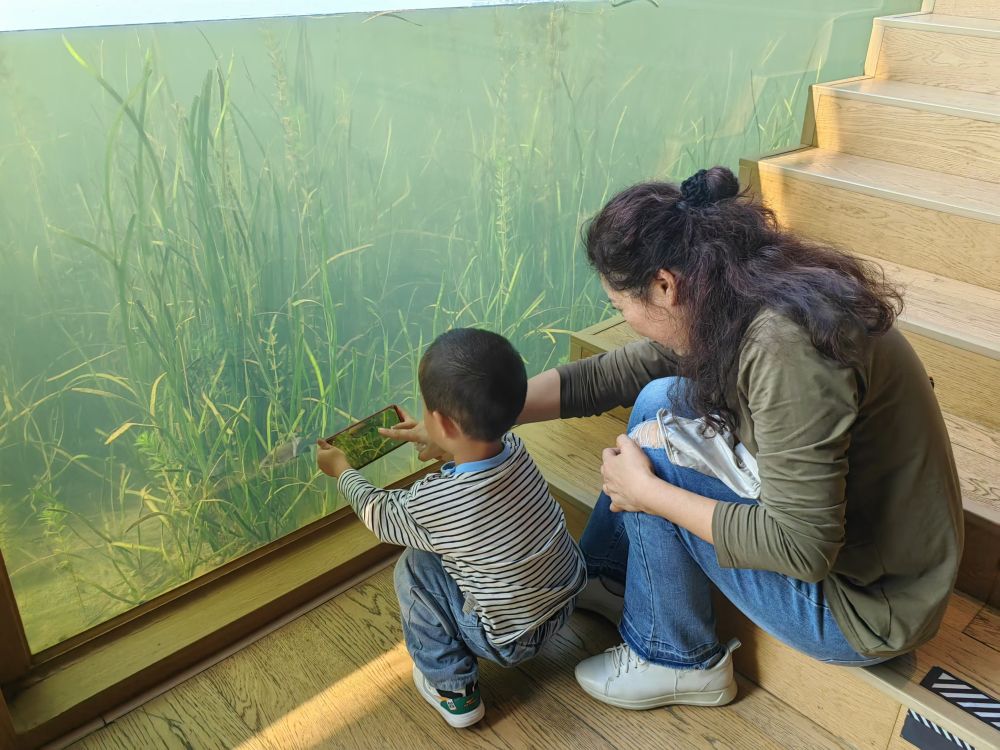 興隆湖畔的湖畔書店,人們透過書店內的玻璃幕墻,可以看到湖底的景象。新華社記者董小紅 攝