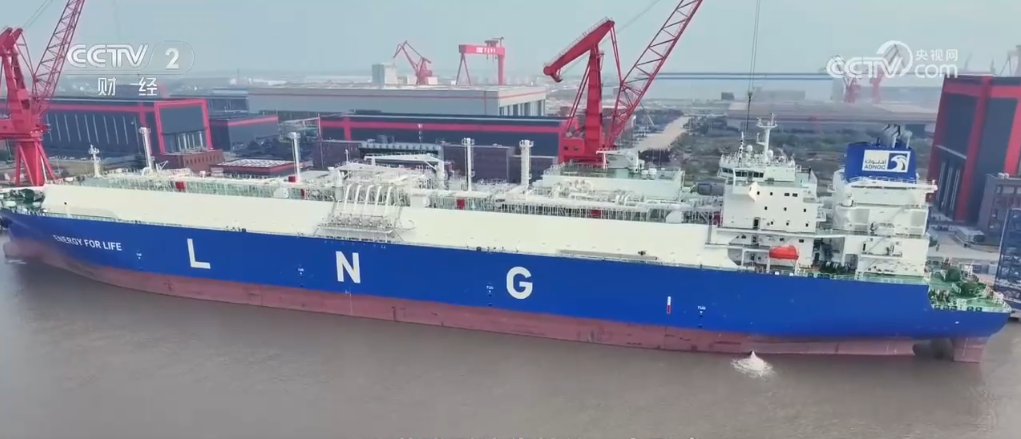 中國自主研制的首艘新型大型LNG液化天然氣運輸船11月25日在上海交付國外用戶。這型船采用了國際先進的新型貨艙系統,一次運輸量可滿足一個城市一個月的供給需求,填補了中國在該船型建造領域的空白。