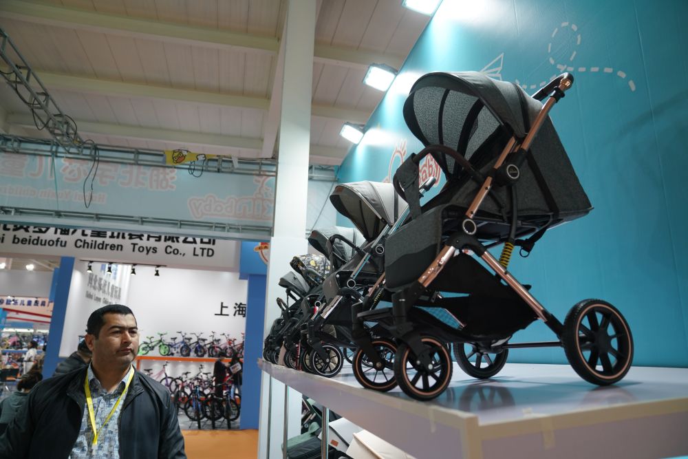 在河北省平鄉縣河古廟鎮一家童車生產企業展廳內拍攝的童車產品。新華社記者 岳文婷 攝