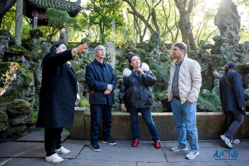 天一閣作為中國現存最古老的私人藏書樓之一,深深吸引了外國記者的注意。天一閣內保存了豐富的古籍與文化遺產,展現了寧波作為“文化名城”的深厚底蘊。講解員向記者們詳細地介紹了天一閣的歷史背景和文化價值,講述了“書藏古今、港通天下”的文化內涵,使記者們對寧波的文化歷史有了更深的理解。